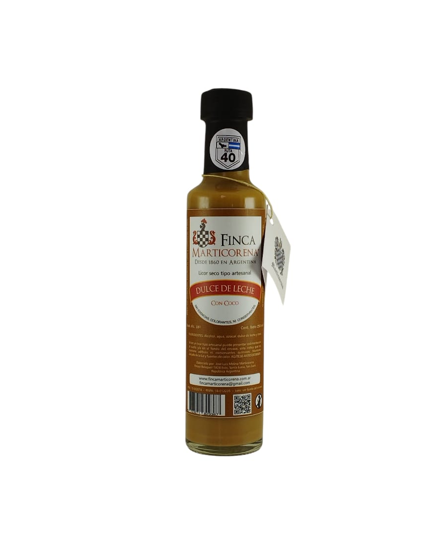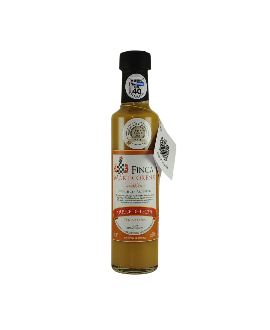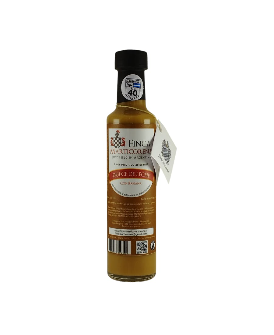 El Dulce de leche con banana de Finca Marticorena es un licor artesanal que combina dulce de leche elaborado de manera tradicional con una cuidada maceración de banana madura. Su elaboración minuciosa y su receta transmitida de generación en generación dan lugar a una bebida elegante, suave y perfectamente equilibrada, pensada para disfrutarse con placer y orgullo argentino.